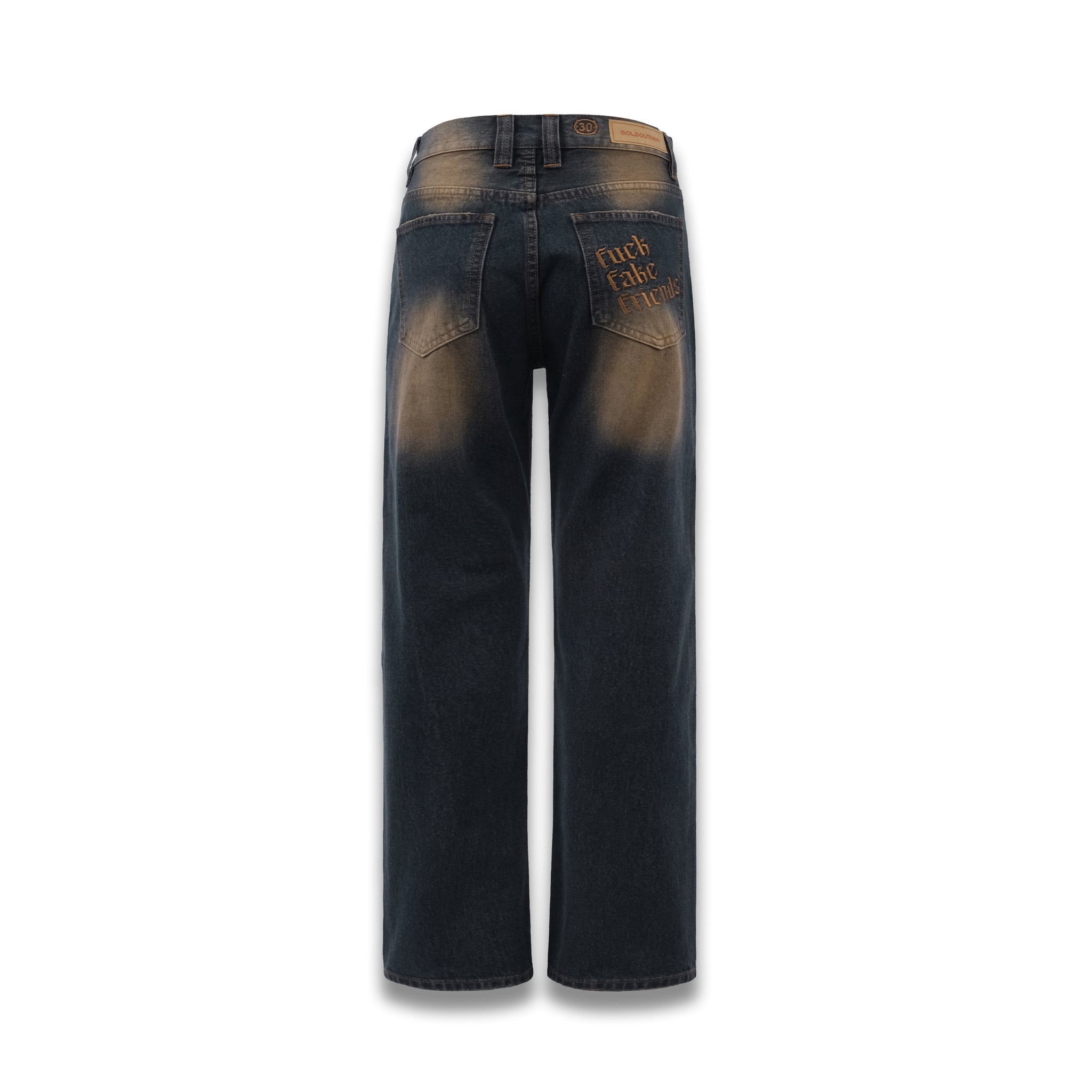- Quần màu xanh đậm, đã được xử lý wash vải, tiêm màu hiệu ứng cam cực bền bỉ, không co rút sau khi giặt.