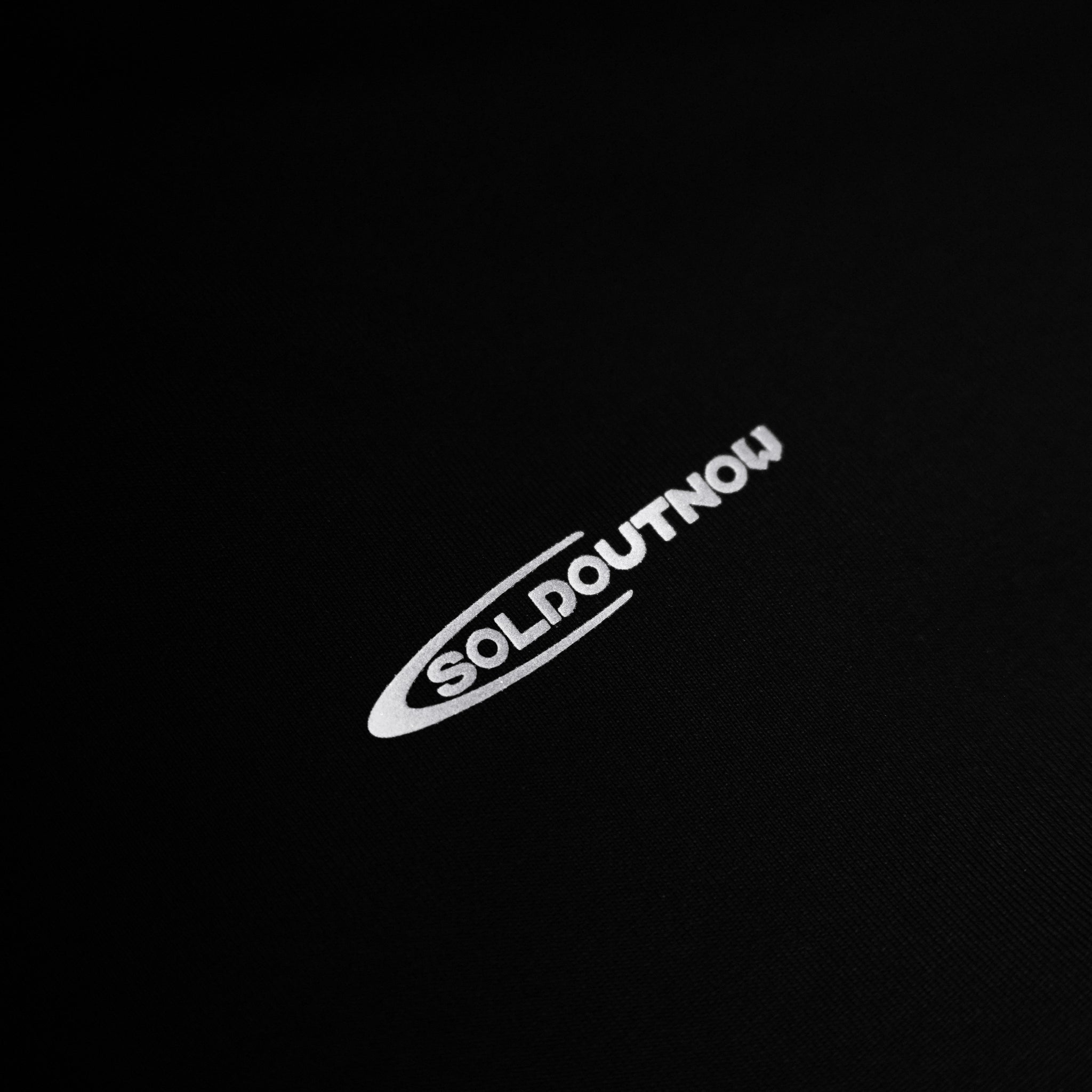 - Áo thun đen với logo phản quang ở ngực và text logo được in sau áo